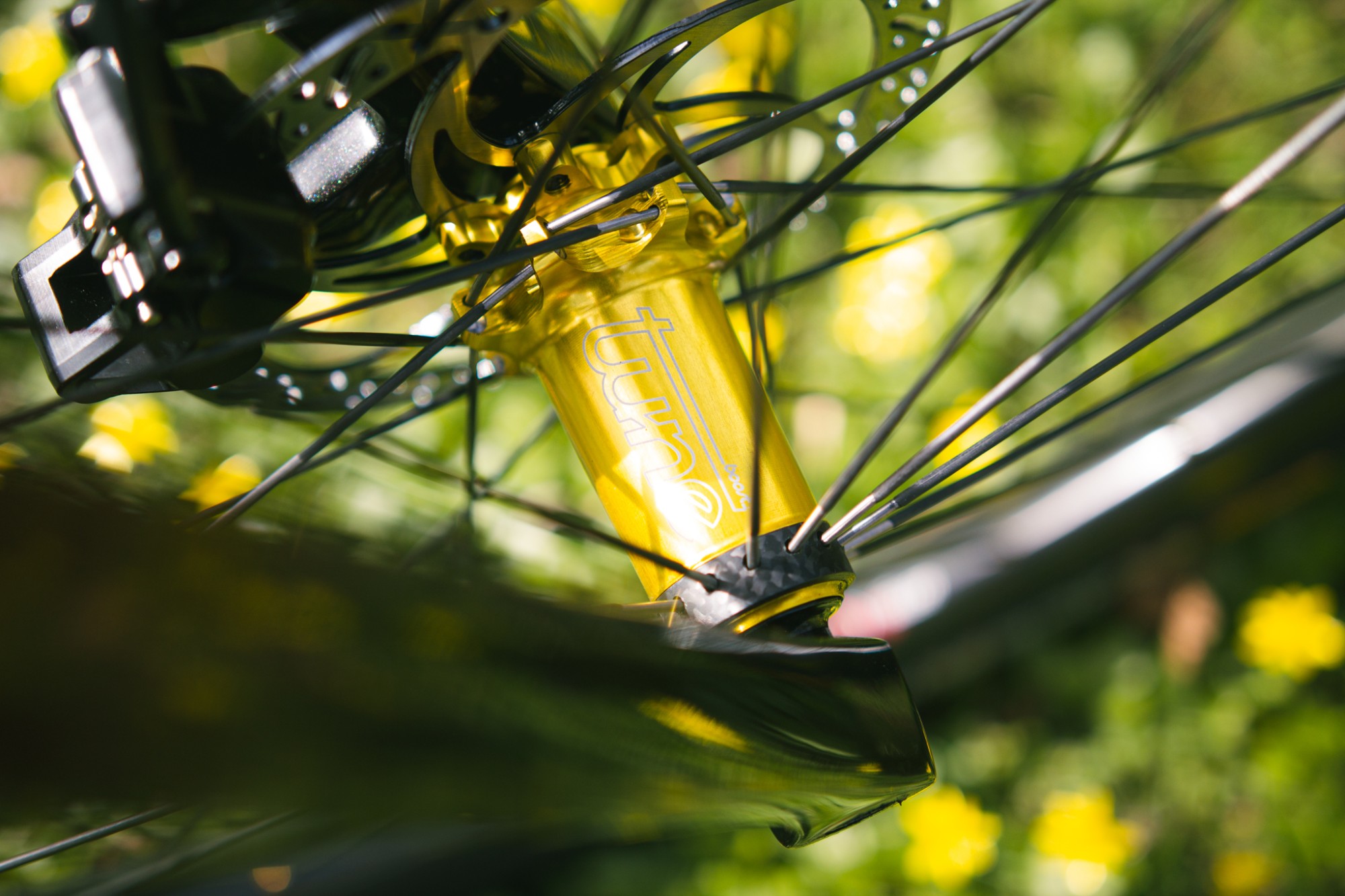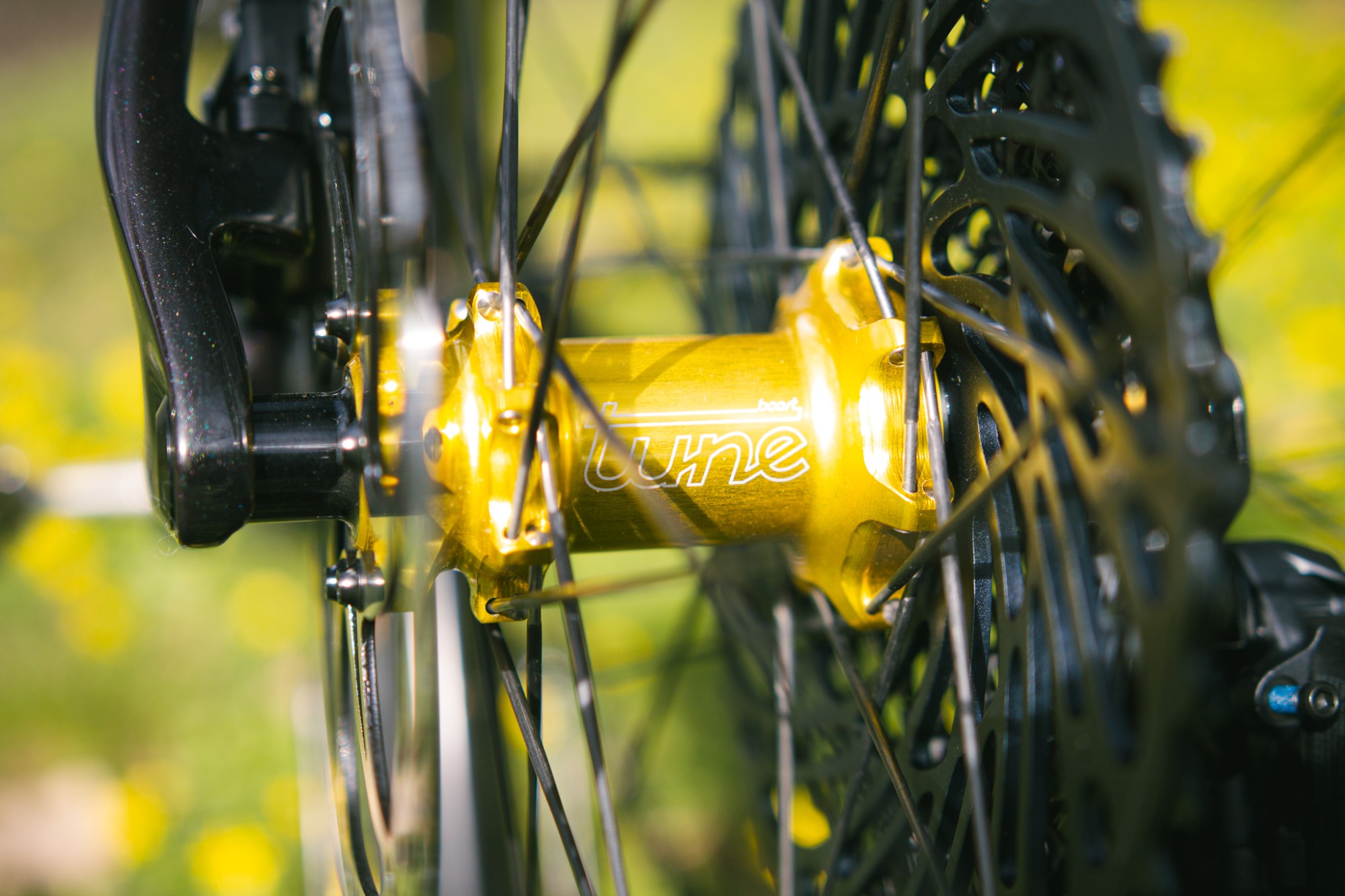 Bei den Laufrädern sollten Duke Felgen mit Carbon -Titan Speichen und Tune Naben in Gold verbaut werden. Eine Feine und auch exklusive Zusammenstellung welche knapp über 1000 Gramm Gesamtgewicht auf die Wage bringt.