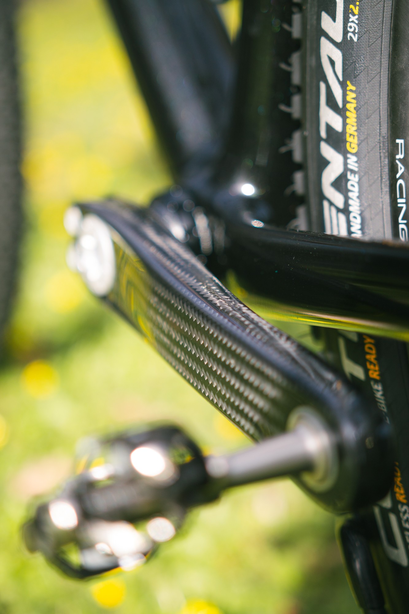 Der Rahmen, ein Specialized Epic Hardtail, sollte lackiert werden. Nichts Neues für uns! Allerdings mit der kleinen Raffinesse dass die Goldtöne nicht in Farbe, sondern in Blattgold auf den Rahmen gebracht werden sollen.