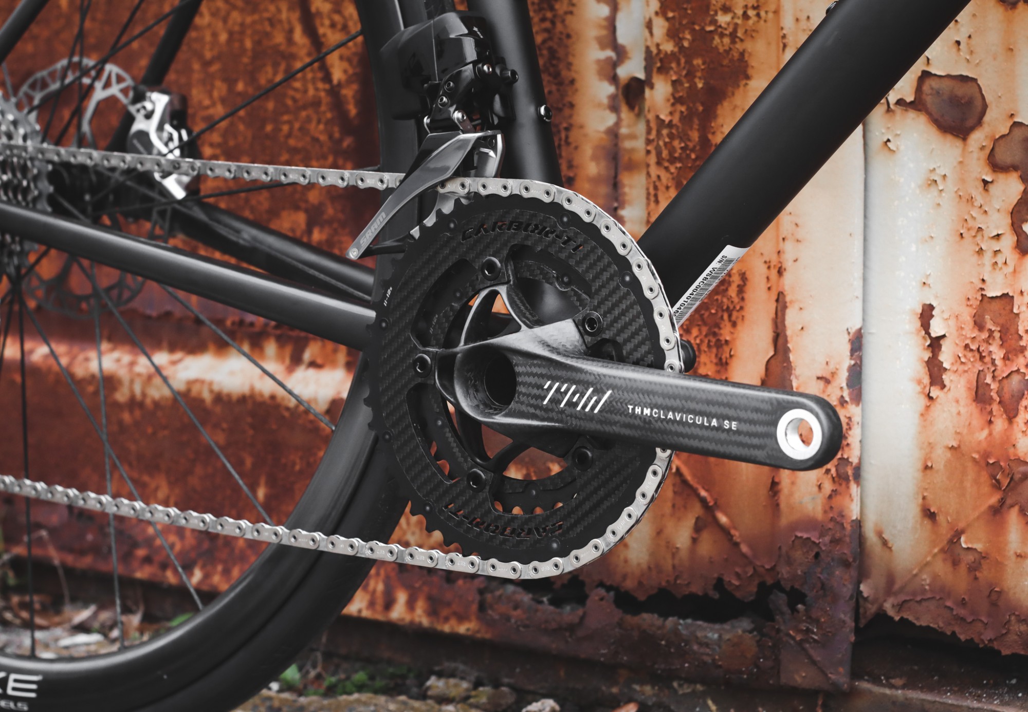 Wer glaubt eine Sram Red Kubel im Rad zu finden täuscht sich! Verbaut haben wir stattdessen die ultraleichte "THM CARBONES Kurbel Clavicula SE Road". Diese bringt gerade einmal 299g auf die Wage und wurde in unserem Falle mit dem 46 Zähne großen "Carbon-Ti X-Carbo Ring" Kettenblatt und dem passenden 33 Zähne Kettenblatt ausgestattet.
