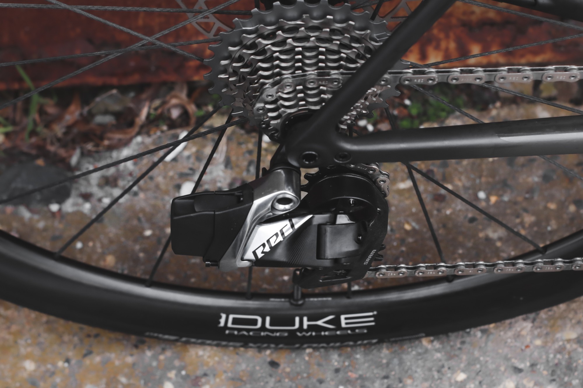 Die Flattop Kette aus der Sram Red Gruppe leitet dann die eingehende Energie an die Sram XG-1290 Kassette weiter.