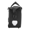 Fahrrad-Aktentasche mit Rollverschluss; PU-beschichtetes Gewebe mit eingearbeitetem Reflexgarn; gepolsterter abnehmbarer Tragegurt; Tragegriff; Organizer; Kantenschutz; Abstellfüße; Reflektoren.