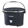 Wasserdichter Fahrrad-Lenkerkorb mit Deckelverschluss; mittige Deckelfixierung erlaubt schnellen Zugriff auf Inhalt; stabiler Aluminiumrahmen; komfortabler, verstellbarer Tragegriff; PU-beschichtetes Cordura-Mischgewebe; Innentasche mit Reißverschluss; Korb steht selbstständig durch Innenversteifung; stabile Abstellfüße; Reflektor; maximale Zuladung 5 kg